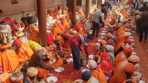 सोहना के शिव कुंड परिसर में फलहारी बाबा छंगामल जी महाराज की 39 वी बरसी पर पहुँचे साधु संत भजन कीर्तन के दौरान भगवान की भक्ति में लीन होकर जहाँ एक तरफ नृत्य कर रहे है, तो वही दूसरी तरफ शिव कुंड सेवा समिति द्वारा साधू संतो को सम्मानित किया जा रहा है। वही कुछ साधु भंडारे का प्रसाद ग्रहण कर रहे है।जिनको इलाका के दानी दाता व स्थानीय प्रसाशनिक अधिकारी कंबल व गर्म कपड़े वितरित कर रहे है।