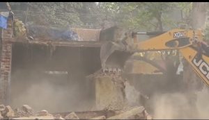 अवैध रूप से बनाई गई मार्केट पर चलाया बुलडोजर-
