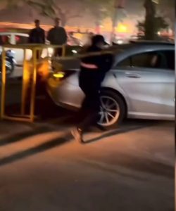 सिक्योरिटी गार्ड ने मर्सिडीज़ गाड़ी पर बरसाए डंडे-